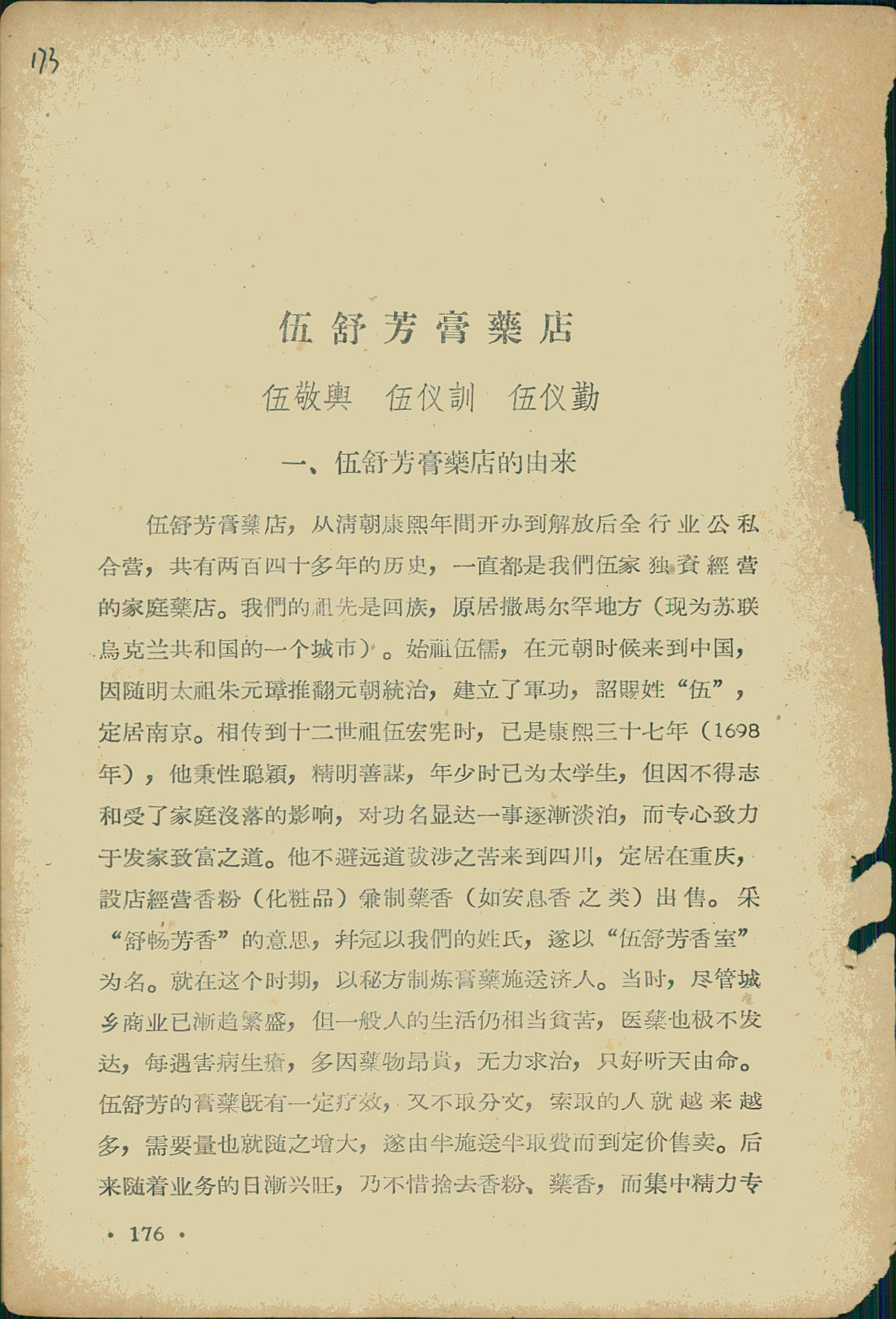 重庆工商史料选辑第三辑-伍舒芳膏药相关资料