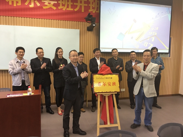 掀开红绸缎,重庆科技学院、重庆希尔安药业有限公司校企共建“希尔安班”的金色牌匾露出尊容,现场爆发出雷鸣般的掌声。2016年4月21日,在重庆市科委、重庆科技学院、希尔安药业相关领导及“希尔安班”师生的共同见证下,重庆市科委社会发展科技处处长许志鹏、重庆科技学院副校长贾北平、希尔安药业总经理陈犁共同为“希尔安班” 揭牌,重庆科技学院、重庆希尔安药业有限公司校企共建“希尔安班”正式开班。