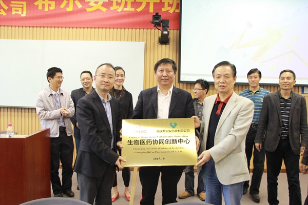 又讯 4月21日,重庆科技学院与重庆希尔安药业有限公司共同建立“生物医药协同创新中心”, 推动校企双方科技交流与合作,优势互补,强化生物医药创新。重庆市科委社会发展科技处处长许志鹏对双方授牌。