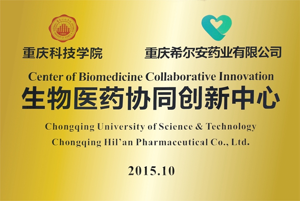 2016年4月21日,重庆科技学院与重庆希尔安药业有限公司共同建立“生物医药协同创新中心”,推动校企双方科技交流与合作,优势互补,强化生物医药创新。重庆市科委社会发展科技处处长许志鹏对双方授牌。