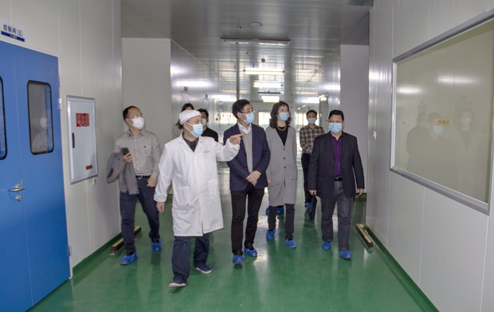 夏部长一行听取了吕姗珊副总经理对复工防疫工作情况介绍,实地查看了国舒制药防疫设施及流程,走进生产车间与车间负责人、一线工人交流,详细了解企业生产经营、工人返岗、健康监测以及当前面临的实际困难和问题等情况。