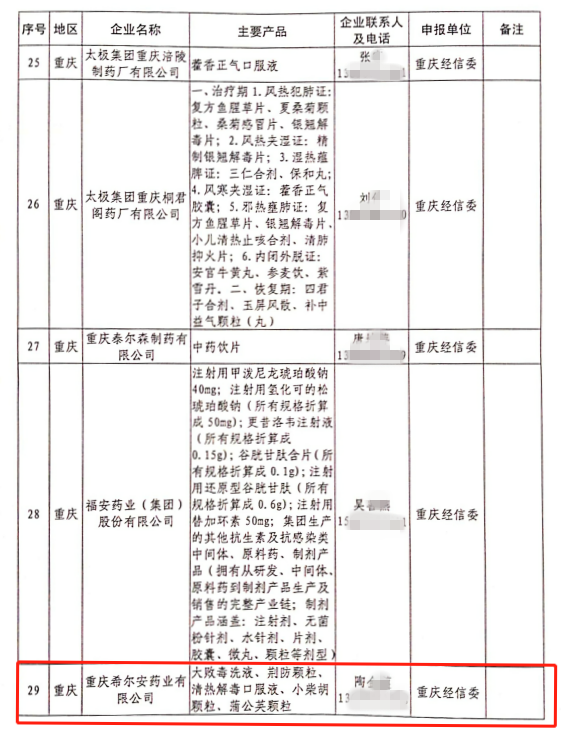希尔安药业入选工信部第一批新冠肺炎疫情防控重点保障企业名单